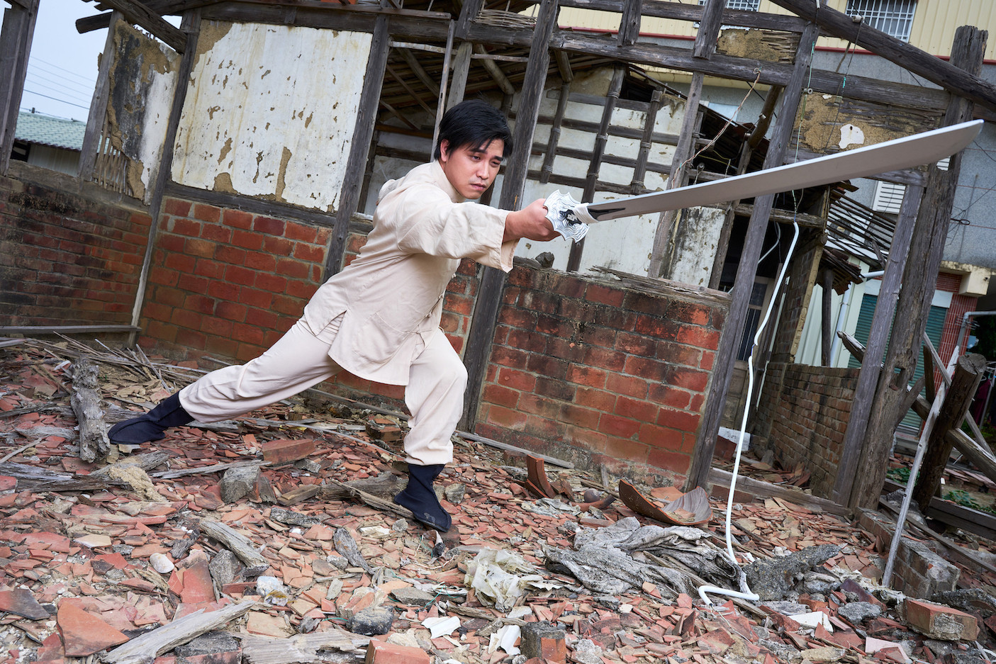 而且不只女优是四大天后演出,男优也是四大天王,像小豹,他有武打底子,片子比武招精时因為太拼结果当场掛彩;还有大雕哥仔仔,之前我们就看过他把娃娃干得死去活来;接下来还有小豪,他身上有股紈絝子弟的气质,穿上马掛饰演银家老爷确实有股不怒而威的气质,与后来在床上M男的演出形成强烈对比;最后是这次演出最大咖的饶舌歌手「阿兄乔治」,他不是来客串的,是来干活的: