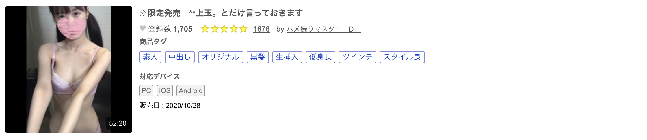 来看这支FC2-PPV-1550026的作品「※限定発売**上玉。**zqjjjzzssn とだけ言っておきます」,没错,这是2020年的作品,其实比较旧了,不过这位演出的女优非常多产,透过其特征,我们还可以找到以下的作品: