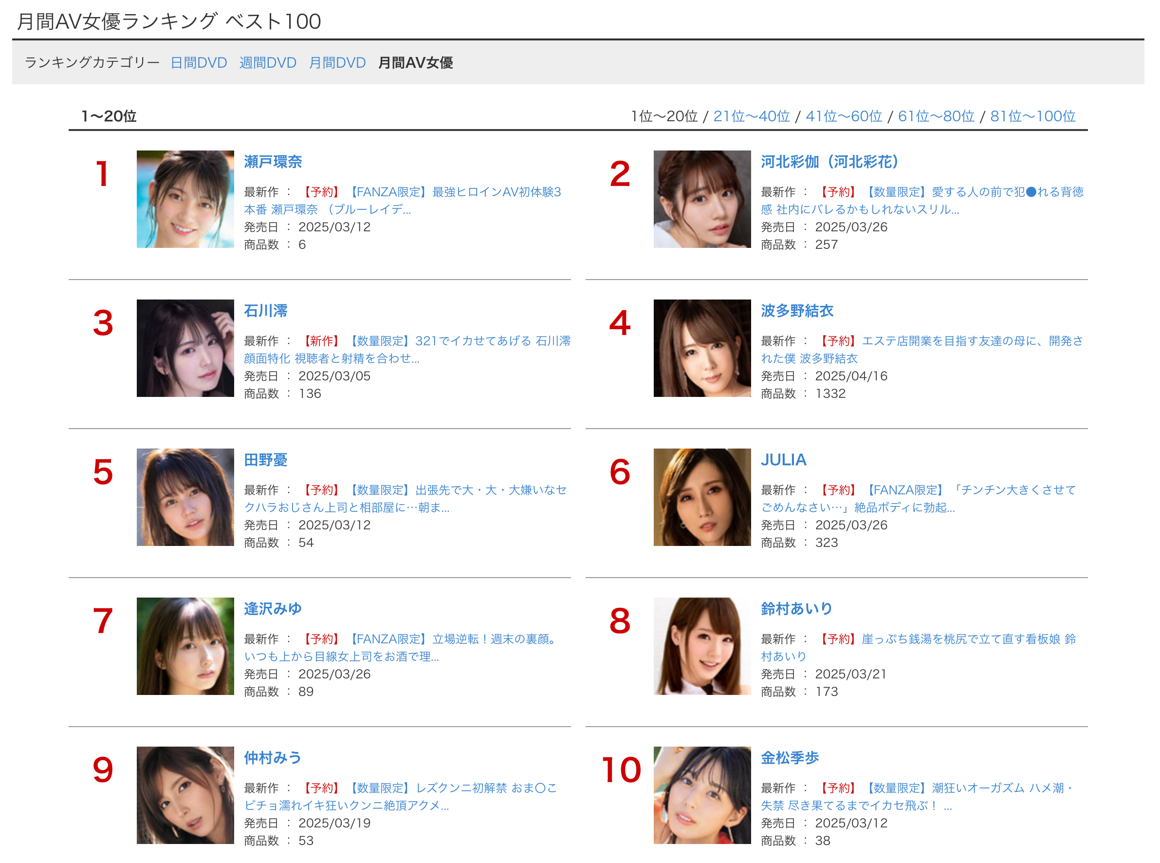 以上,是日本AV界最大销售网站FANZA的2月销售排行榜。