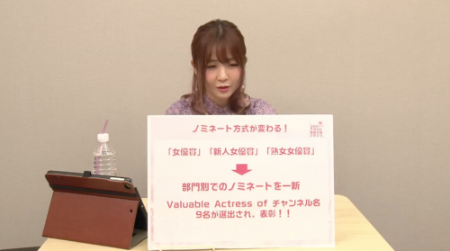 这就是重点了,スカパー! アダルト放送大赏2022是把游戏规则整个改了,以往是由主办单位分别选出各个奖项的入围名单,但这次是由Sky Perfect电视台各频道选出女优参加票选,最多票者即为最优秀女优: