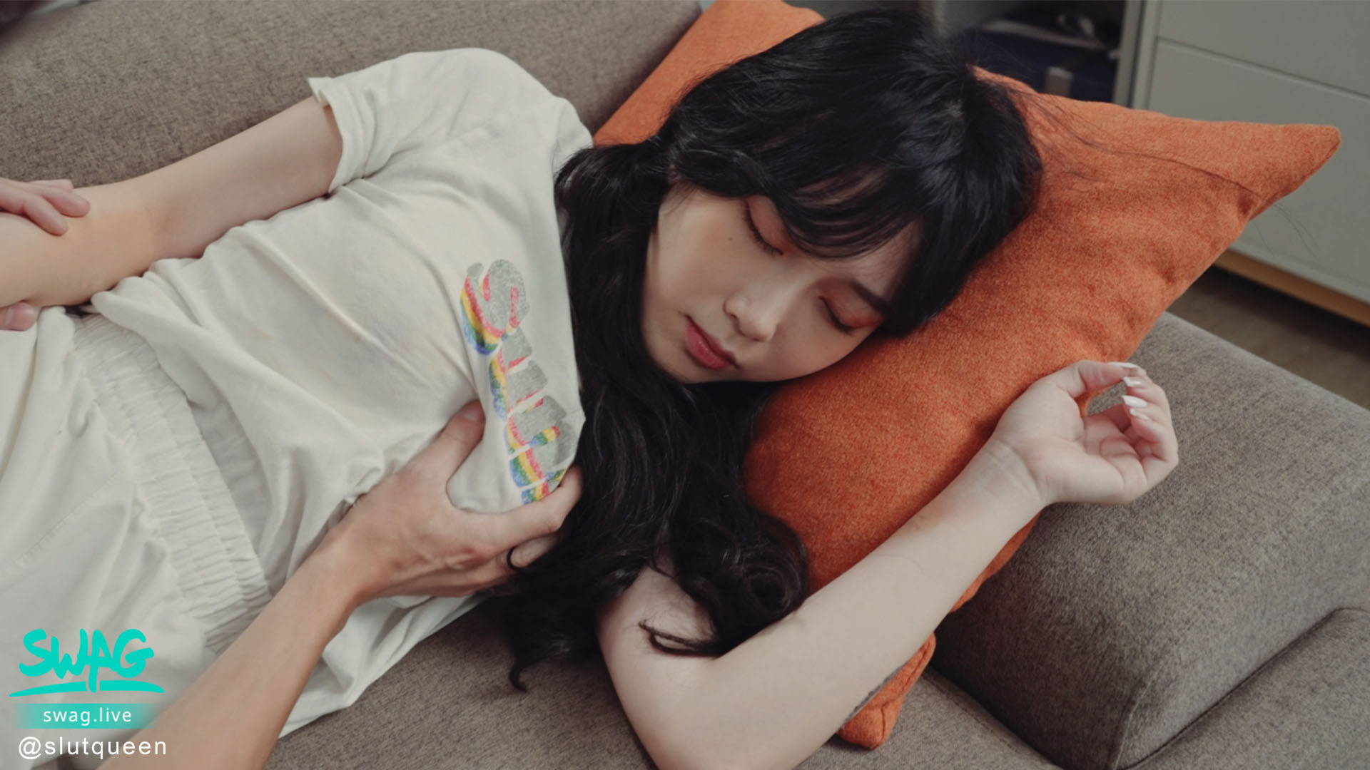 这是我近期非常推的正妹、别号「台版新垣结衣」的演出的作品:这是她首次以超萌双马尾造型现身,百变女王不愧是百变女王,童顏风格也驾驭地很好,实在很可以;片中她是打扫片场的工作人员,因為女优临时放鸽子,所以偷閒在沙发休息的她理所当然地成了「昏睡企划」的女主角,虽然男优又是揉奶又是抠屄地让她惊醒澄清说自己不是AV女优,但人家完全没有收手的意思⋯