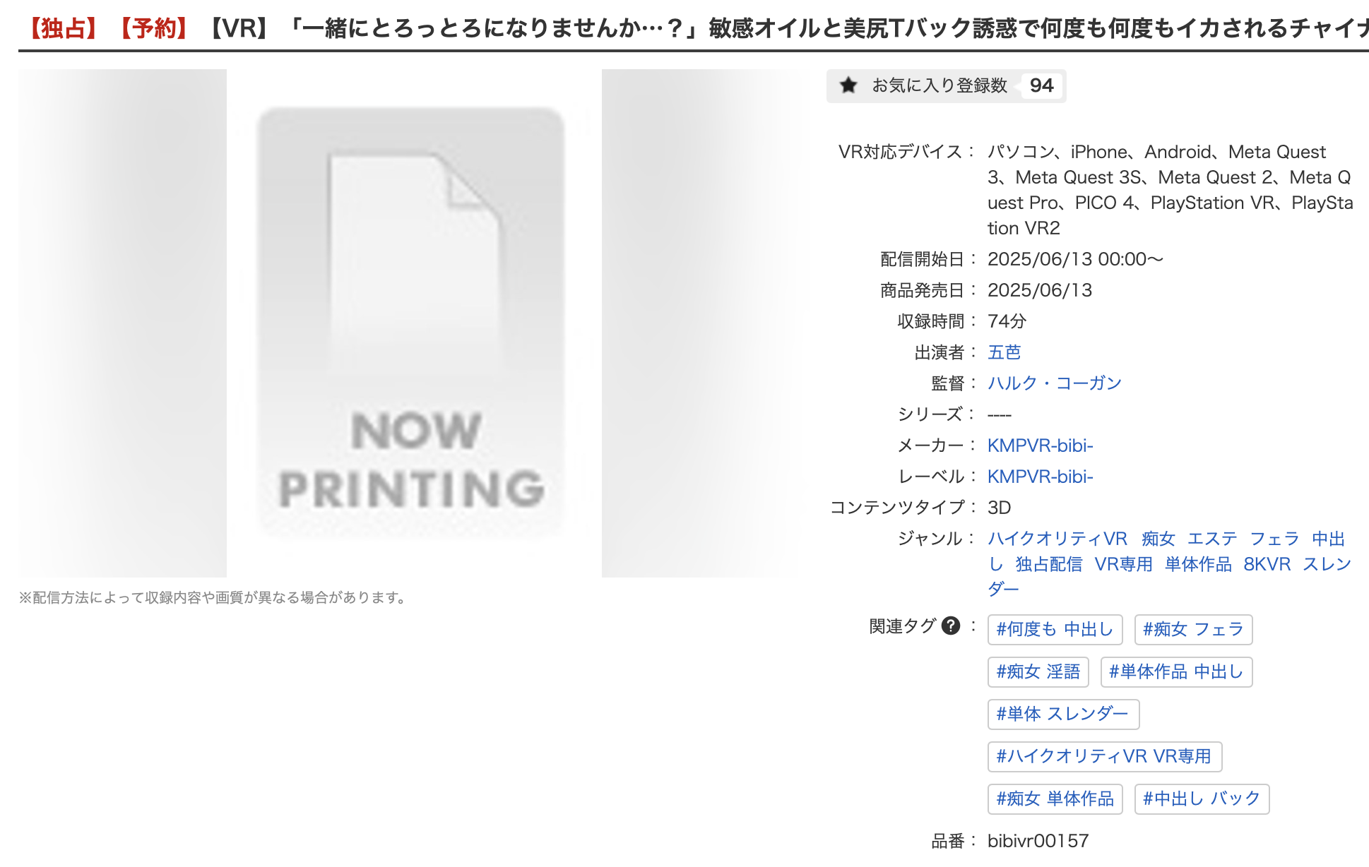 因为发行这支vr片的KMPVR就是家不养唯一女优的片商这么久,然后五芭如果还是タッカーズ(攻击者)的人是不会去那儿拍vr片的,所以答案只有一个,就是,五芭被タッカーズ(攻击者)放生惹~